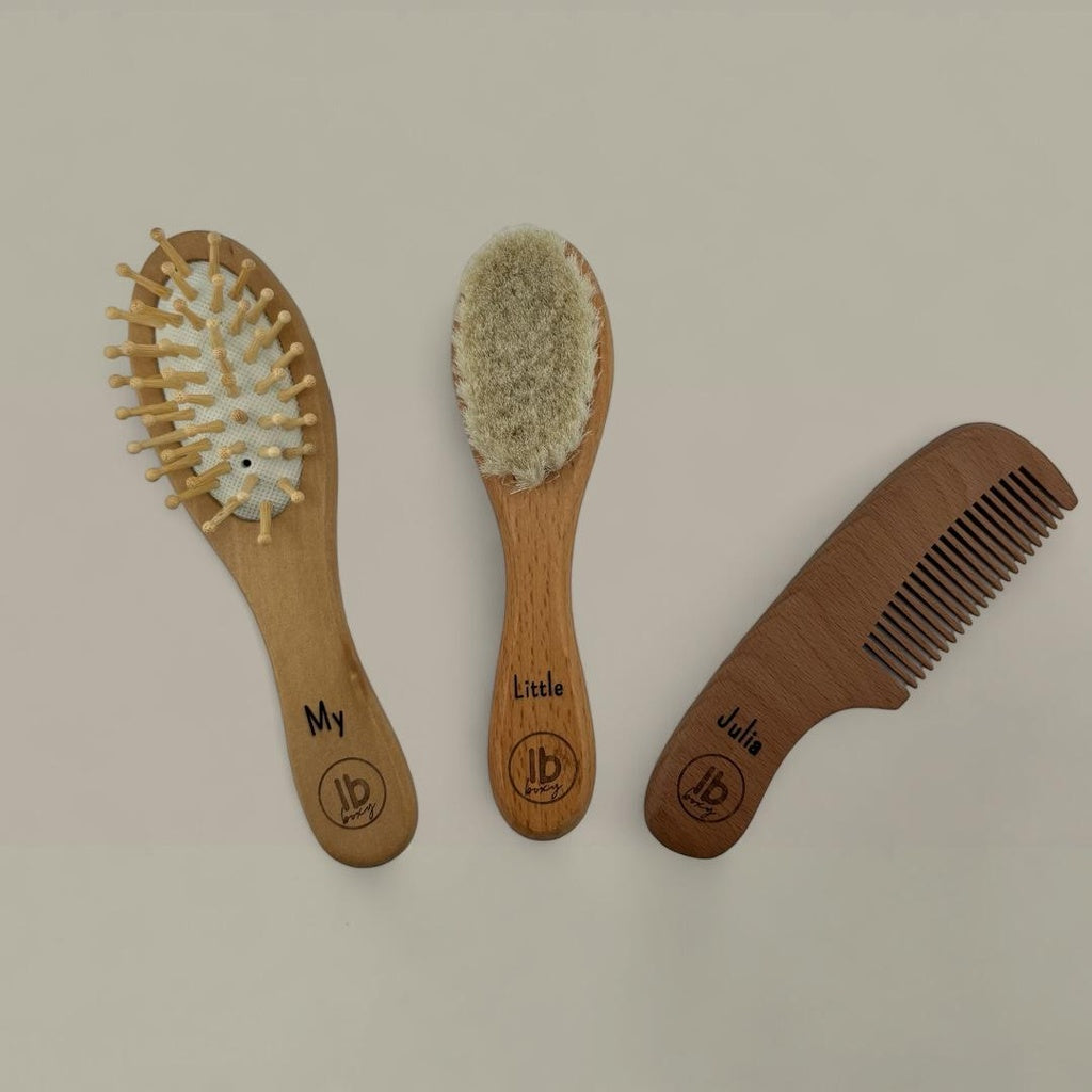 Discover softness and natural beauty with our Wooden Baby Brush and Comb Set.
