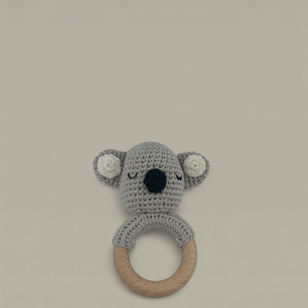 Hello, I'm Oliver the Koala. Although my origin is Australian, in this case I have been carefully handcrafted. I am an ideal companion for your baby, as my texture and tones promote tactile and visual development. Accompanying me is my friend, Rattle the RATTLE, which stimulates your baby's sense of hearing by exploring various sounds, thus contributing to their sensory and cognitive development.